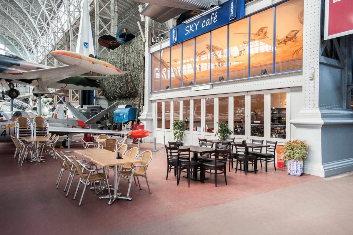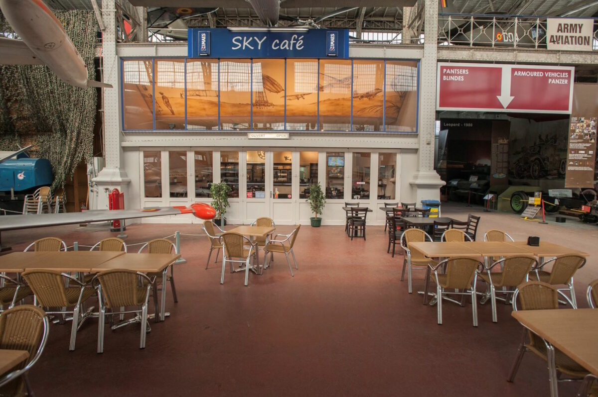 Le Sky Café est le restaurant du Musée Royal de l’Armée. Il est situé dans le Hall de l’Aviation, dans l’aile droite du musée.